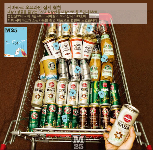시마파크 오프라인 잡지 협찬대상 : 성공을 꿈꾸는 2534 직장인을 대상으로 한 주간지 M25내용 : 종합정보미디어그룹 (주)미디어월의 M25잡지 108호에 저희 시마파크가 쇼핑카트를 촬영 제품으로 협찬해 드렸습니다.