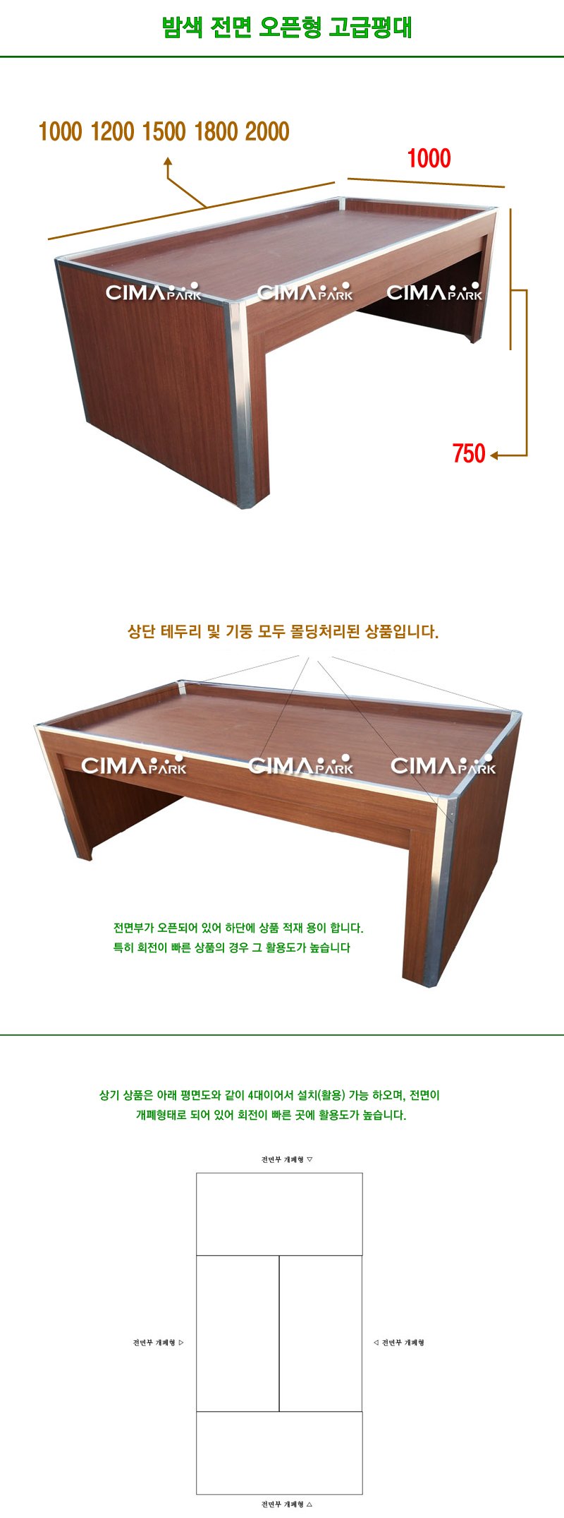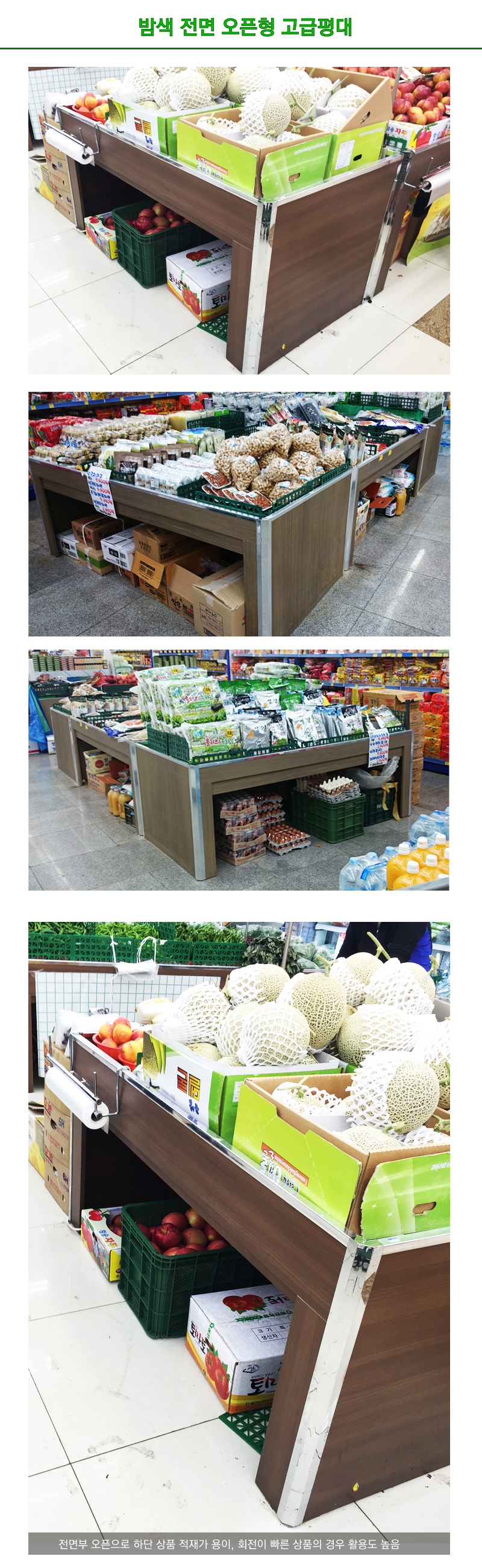1. 밤색 계열의 상품으로 고급스러운 연출이 가능합니다. 2. 전면은 오픈, 3면은 밀폐로 되어 있으며 전면 하단쪽에는 상품 적재가 가능합니다. 3. 전면 하단쪽에는 상품회전이 빠른 상품의 재고를 보유 함으로써 용이하게 활용 합니다. 4. 본 제품은 부피가 큰 상품으로 택배 발송이 어려워 가급적 그외 배송방법으로 처리 합니다. 5. 배송은 다마스, 용달, 합바차등 다양한 운송 수단을 통해 배송되며 운임은 지역에 따라 상이하며 여러대일 경우가 운임 비용이 다소 덜 부담스럽습니다. 6. 주문 주시면 고객센터에서 운임, 출고, 도착 가능일까지 출고 전에 안내 해 드리고 있습니다.