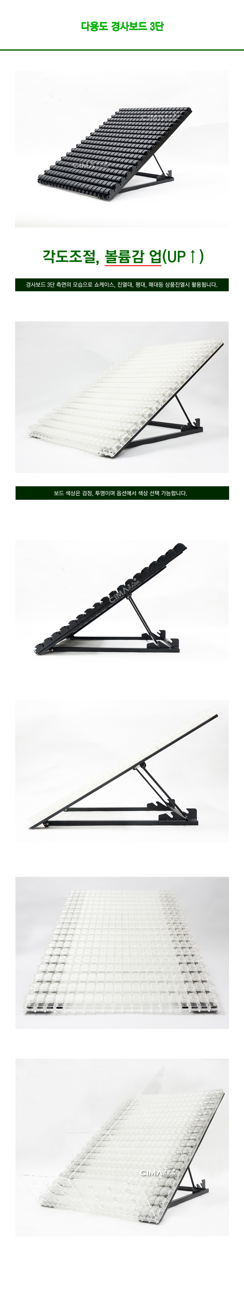 1. 매장내에서 쇼케이스나 평대 진열대등 경사 진열시에 활용 됩니다.2. 본 경사보드는 3단 형태이며 각도는 총 3단계로 나뉘어 있습니다. 3. 보통 쇼케이스에는 밑선반쪽에 많이 사용하습니다.4. 주문 하신 후 약 1~7일 정도 소요 될 수 있습니다.5. 수령 시간이 급하신 고객님들께서 사전 출고 가능일 문의 후 주문 해 주시기 바랍니다.
