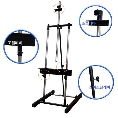 다용도 스튜디오 이젤로 캔바스나 드로잉보드를 거치할수 있게 제작되었으며, "상하조절" 및 "원터치 경사조절"이 가능합니다.견고하고 강하며 크롬도금강철을 사용함으로서, 구조적으로 안정적이고, 본체와 우면지지대가 결합하여 작동하는것이 그 특징입니다.