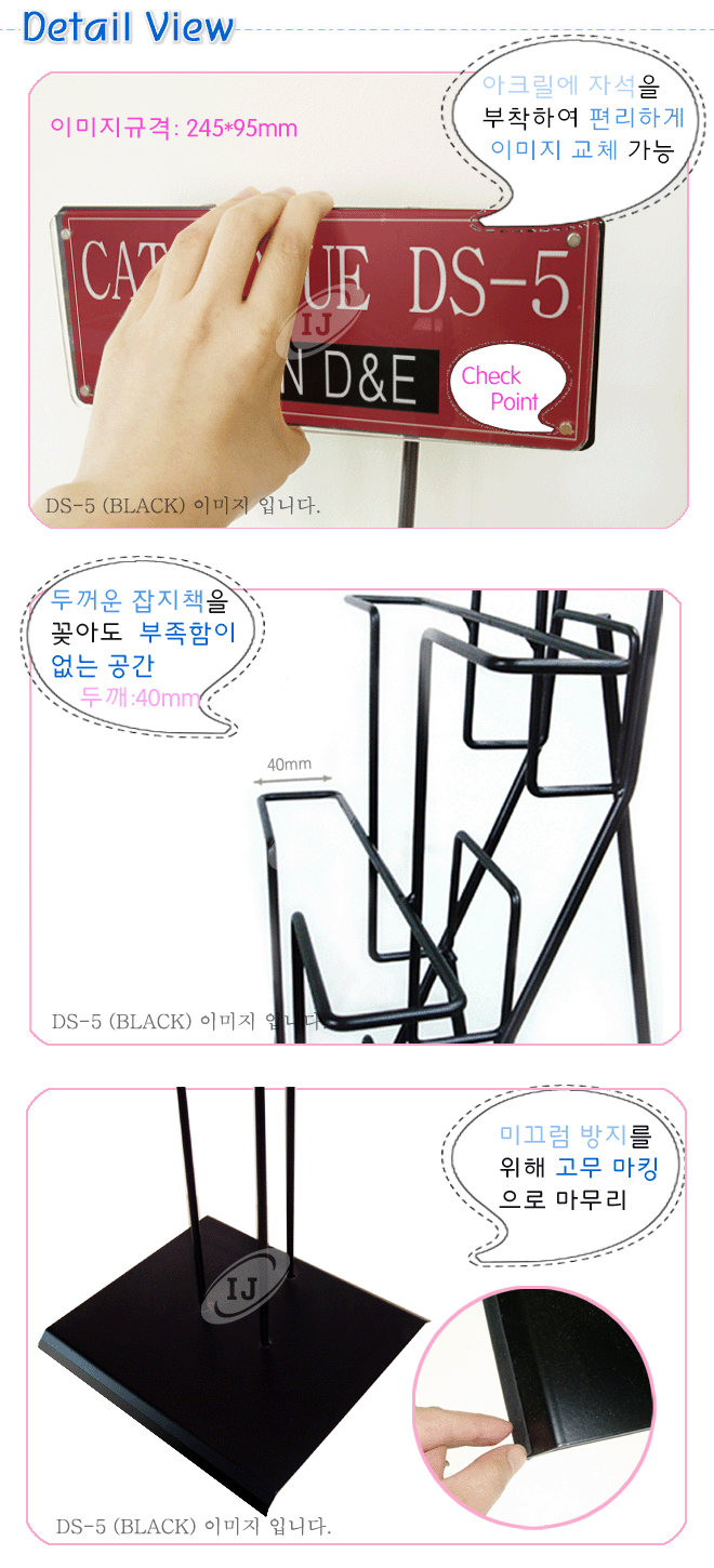 심플한 디자인에 견고성을 더해 효율적 으로 제작되어 사용하는데 더욱 편리합니다.매장을 고급스럽게 만들어 주면 더욱더 깔끔하게 카다로그를 정리 하실수가 있 어 광고 효율성을 극대화 할수 있습니다