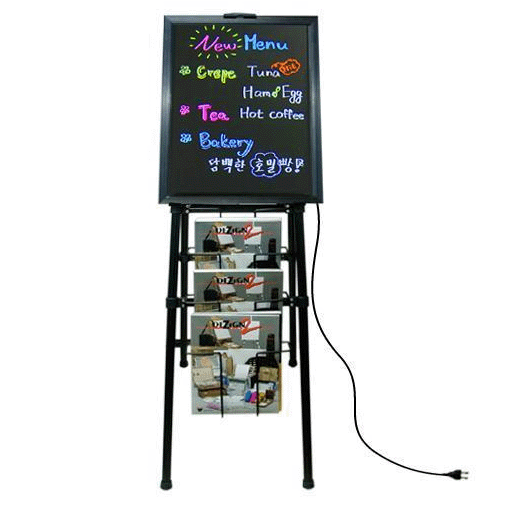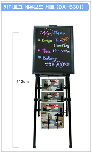 기업의 이미지와 비전을 제시하기 위한 대외 홍보용 카다로그 스탠드입니다. 앞면에 카다로그(브로셔)를 진열하실수 있으면 위(Top) 부분에 네온보드를 장착하여 보다 화려하게 상품의 광고효과를 전달할 수 있습니다.각종매장 및 전시장의 실내조명과 어우려져 매우 고급스럽고 연출이 가능합니다.