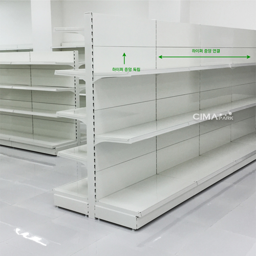 상품특징 하이퍼 중앙 진열대는 보통 매장내 중앙에 위치하며 선반이 양쪽 타입이며 단독 설치 가능한 독립형입니다.