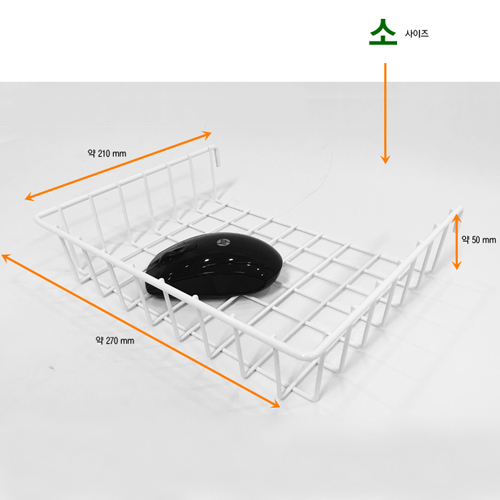 상품특징 메쉬망에 걸어서 사용할 수 있는 망용 바구니 입니다. 간단한 소품을 진열 하실 수 있습니다. 사이즈는 대, 중, 소로 구분되어 있으며, 길이 차이만 있으면 앞뒤 폭과 높이는 동일 합니다.