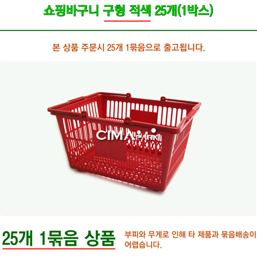 쇼핑바구니 구형 적색 1박스 25개 (1개당 3,100원)