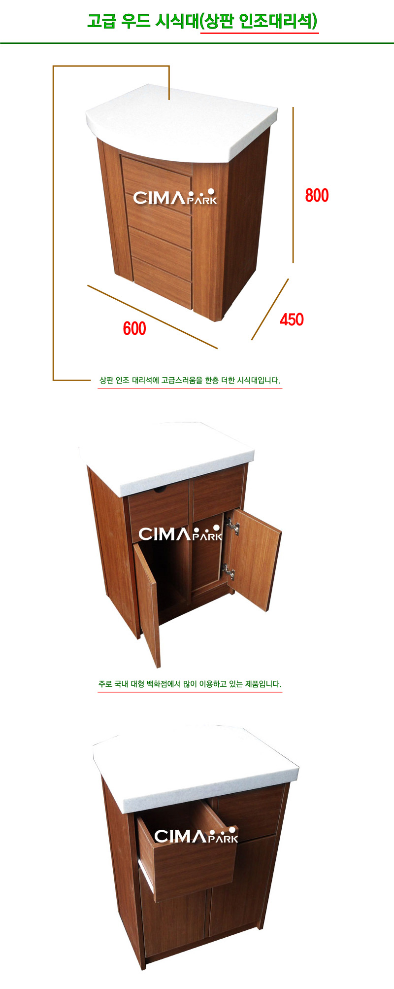 2. 상판 인조대리석에 고급스러움을 한층 더한 시식대입니다. 3. 주로 국내 대형 백화점에서 많이 이용하고 있는 제품입니다.