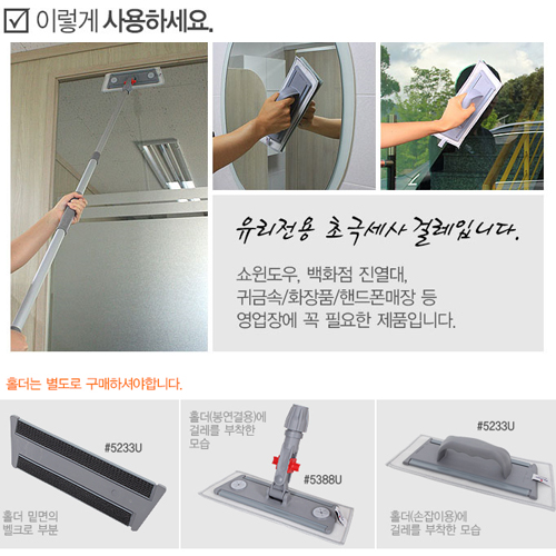 상품특징 쇼윈도우, 백회점 진열대, 귀금속, 화장품, 핸드폰매장등 영업장에 꼭 필요한 초극세사 걸레입니다.