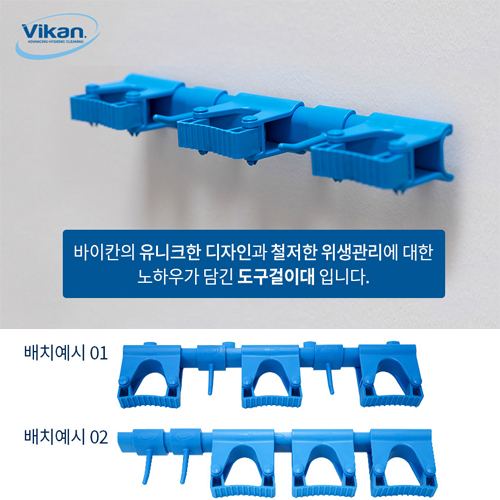 상품특징 벽에 거는 방식으로 밀폐된 공간에 비해 건조가 잘 되어 2차 세균번식 방지, 위생적으로 관리 할 수 있는 도구걸이대 입니다.