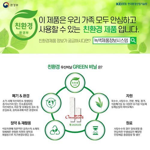 상품특징 유기성 생물자원인 바이오매스 소재로 재활용이 가능하여 탄소저감 및 유해물질 감소, 지구환경 오염 감소등이 있는 친환경 우산비닐 입니다.